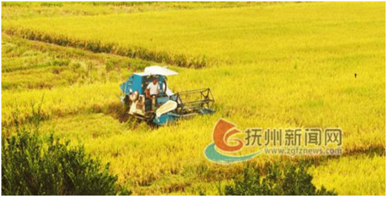 近日,南豐縣太和鎮(zhèn)店前村金色的稻田里,農(nóng)民正在使用收割機(jī)收割中稻。入秋以來,該縣11.7萬(wàn)畝中稻相繼成熟,當(dāng)?shù)剞r(nóng)民抓住晴好天氣,加緊搶收,確保顆粒歸倉(cāng)。