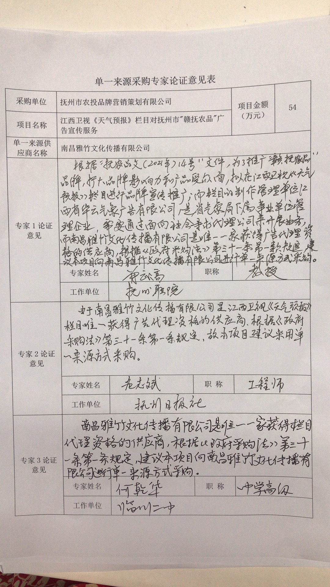 根據(jù)“撫農(nóng)品文(2021年)14號”文件,為了推廣“贛撫農(nóng)品”品牌,擴大品牌影響力和產(chǎn)品受眾面,擬在江西衛(wèi)視《天氣預(yù)報》欄目進(jìn)行品牌宣傳推廣;而欄目的制作管理單位江西省華云氣象廣告有限公司,是省氣象局下屬的事業(yè)單位管理企業(yè),需要通過面向社會尋求代理公司來開展業(yè)務(wù),而南昌雅竹文化傳播有限公司是唯一一家獲得廣告代理資格的供應(yīng)商,根據(jù)《政府采購法》第三十一條第一條規(guī)定,建議本項目向南昌雅竹文化傳播有限公司進(jìn)行單一來源方式采購;